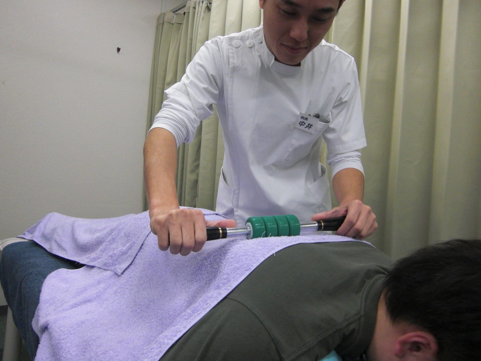 しっかりと鑑別して自分が診れると判断したら「ローリング療法」で施術開始です。松之浜整骨院 ローリング器