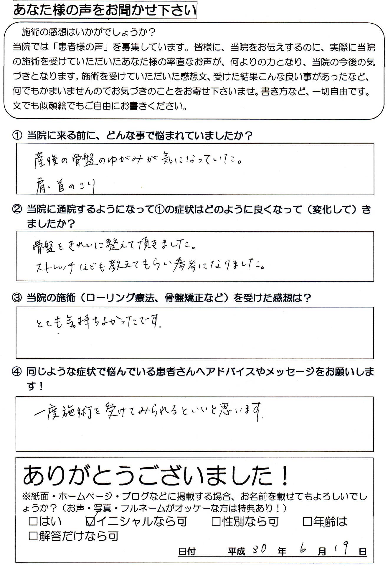 N.Hさまは2人目の出産後の骨盤矯正でご来院くださいました。