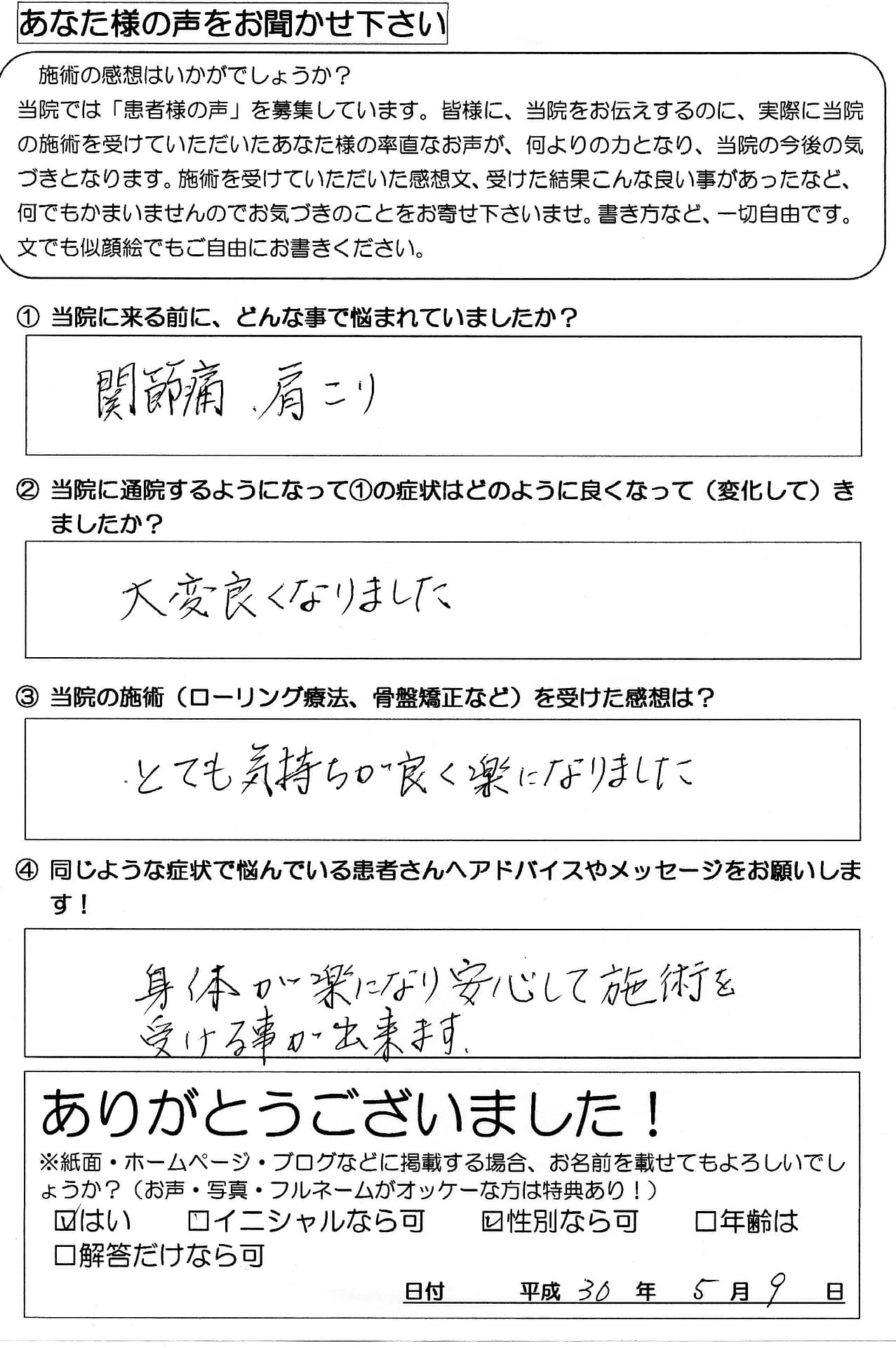 とても気持ちよく楽になりました。